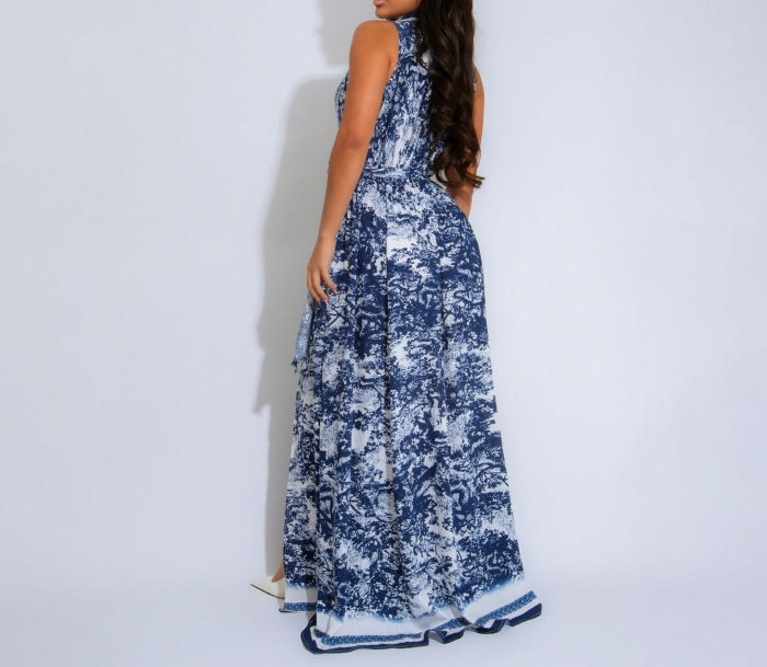 2025 New Women's Floral Print Maxi Dress – Fashionable, Sexy High Slit, Bohemian Flowy Dress with BeltSKU: #c4144-1
