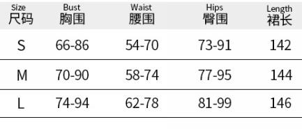 | Size | Bust | Waist | Hips |