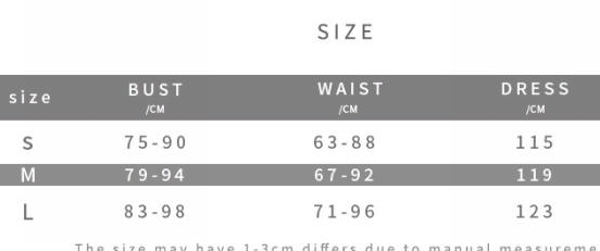 | Size | Bust | Waist | Hips |