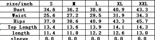 | Size | Bust | Waist | Hips |