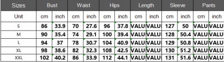 | Size | Bust | Waist | Hips |