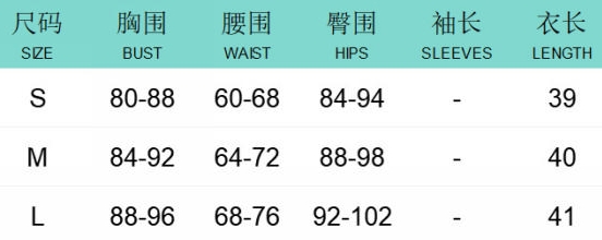 | Size | Bust | Waist | Hips |