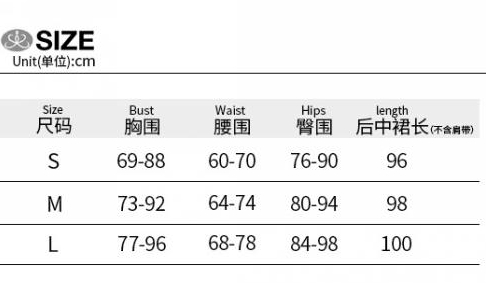 | Size | Bust | Waist | Hips |
