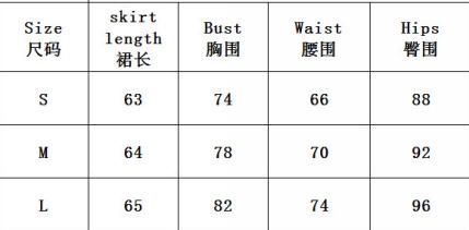 | Size | Bust | Waist | Hips |