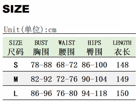 | Size | Bust | Waist | Hips |