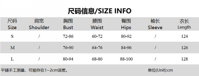 | Size | Bust | Waist | Hips |