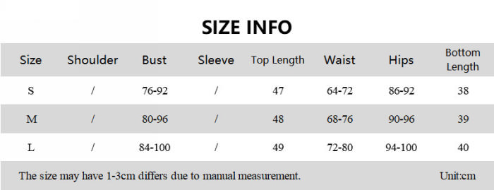 | Size | Bust | Waist | Hips |
