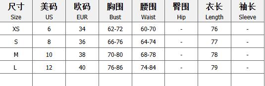 | Size | Bust | Waist | Hips |