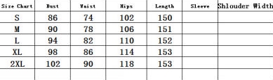 | Size | Bust | Waist | Hips |