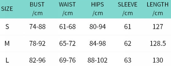| Size | Bust | Waist | Hips |