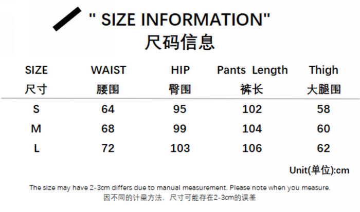 | Size | Bust | Waist | Hips |