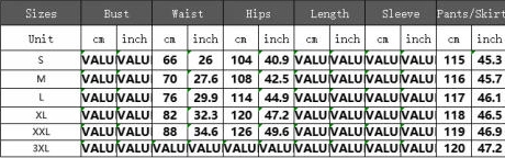 | Size | Bust | Waist | Hips |