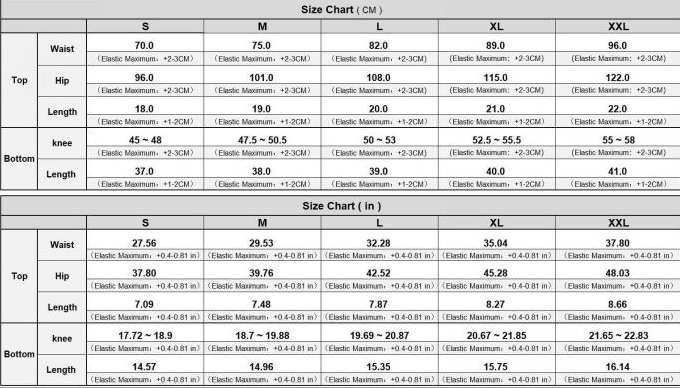 | Size | Bust | Waist | Hips |