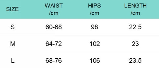 | Size | Bust | Waist | Hips |