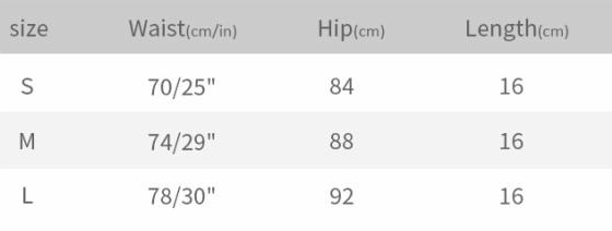 | Size | Bust | Waist | Hips |