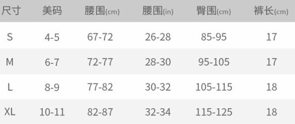 | Size | Bust | Waist | Hips |