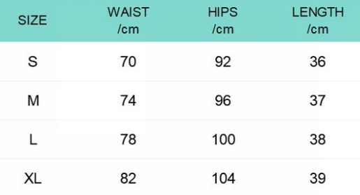 | Size | Bust | Waist | Hips |