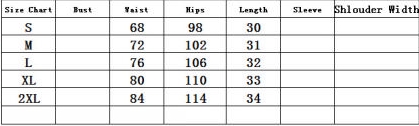 | Size | Bust | Waist | Hips |
