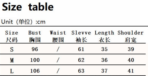| Size | Bust | Waist | Hips |