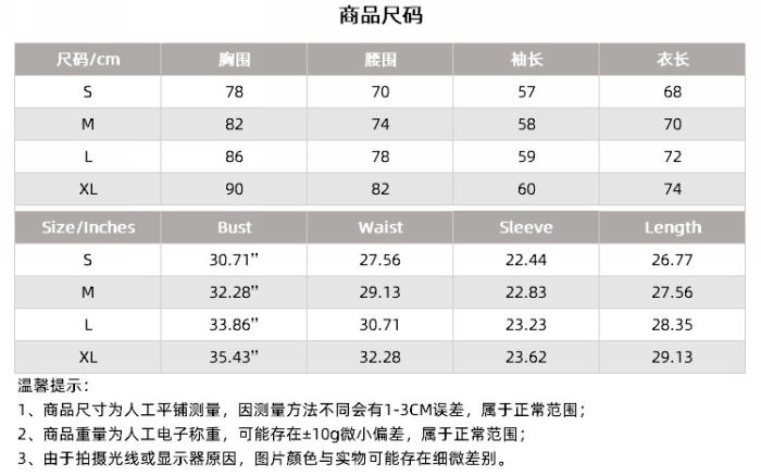 | Size | Bust | Waist | Hips |