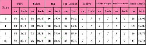 | Size | Bust | Waist | Hips |
