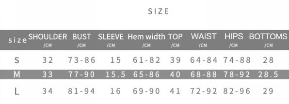 | Size | Bust | Waist | Hips |