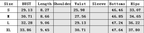 | Size | Bust | Waist | Hips |