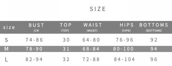 | Size | Bust | Waist | Hips |