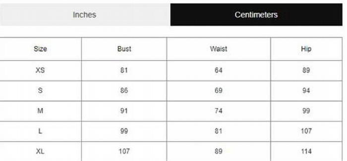 | Size | Bust | Waist | Hips |