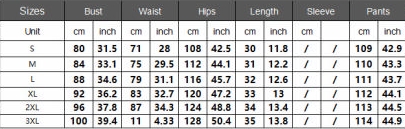 | Size | Bust | Waist | Hips |