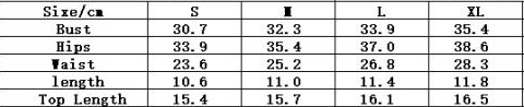 | Size | Bust | Waist | Hips |