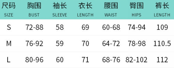 | Size | Bust | Waist | Hips |