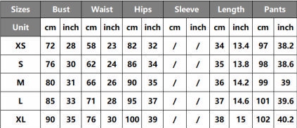 | Size | Bust | Waist | Hips |