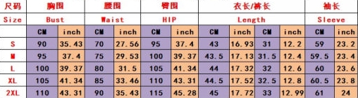 | Size | Bust | Waist | Hips |