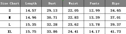 | Size | Bust | Waist | Hips |