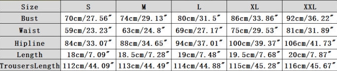 | Size | Bust | Waist | Hips |