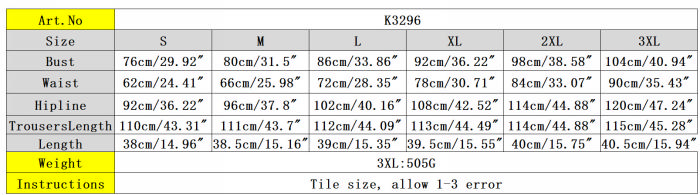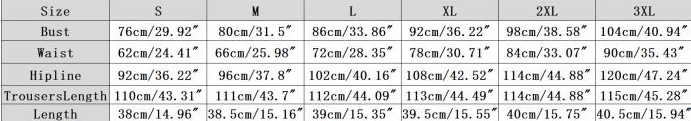 | Size | Bust | Waist | Hips |