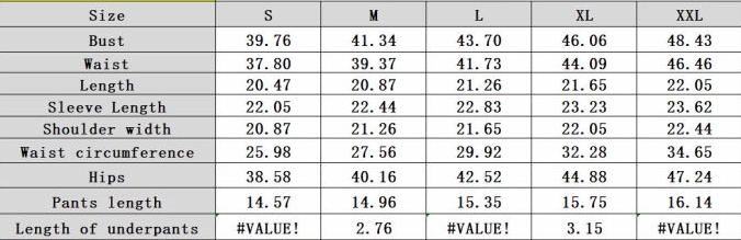 | Size | Bust | Waist | Hips |