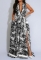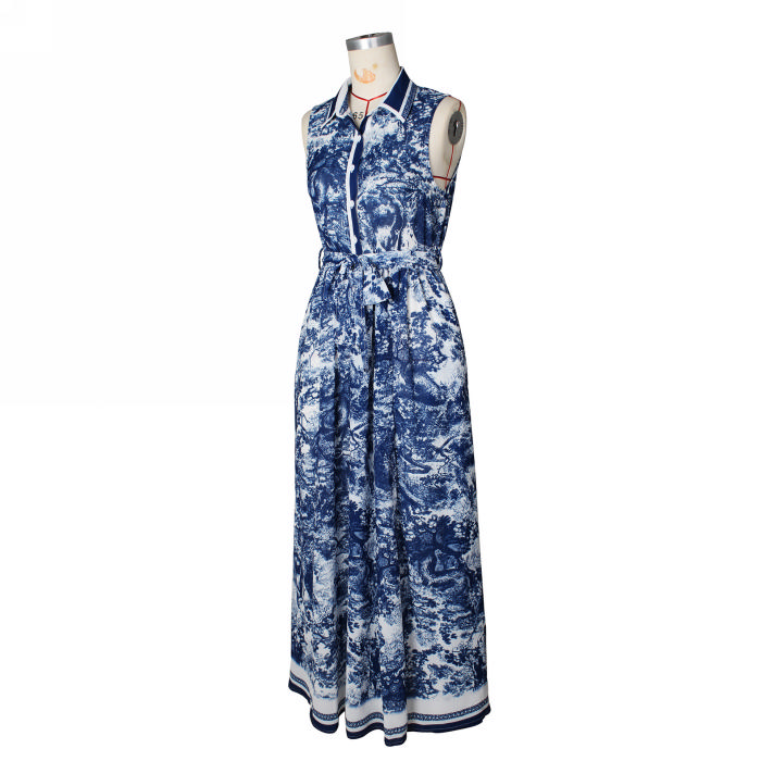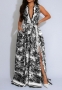 2025 New Women's Floral Print Maxi Dress – Fashionable, Sexy High Slit, Bohemian Flowy Dress with BeltSKU: #c4144-1