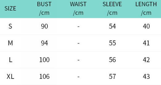 | Size | Bust | Waist | Hips |