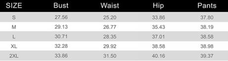 | Size | Bust | Waist | Hips |