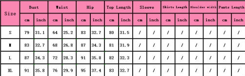 | Size | Bust | Waist | Hips |