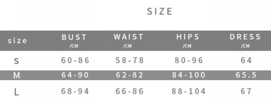 | Size | Bust | Waist | Hips |
