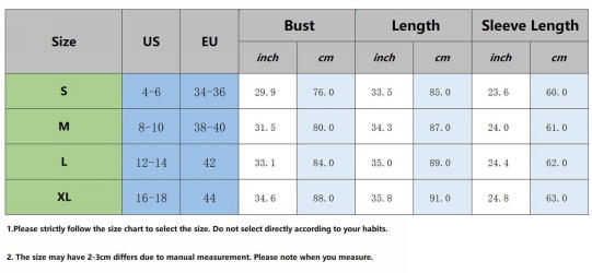 | Size | Bust | Waist | Hips |