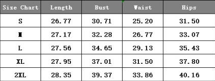 | Size | Bust | Waist | Hips |