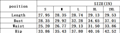 | Size | Bust | Waist | Hips |