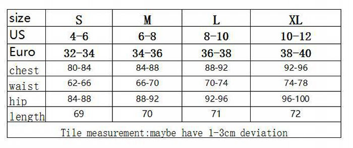 | Size | Bust | Waist | Hips |