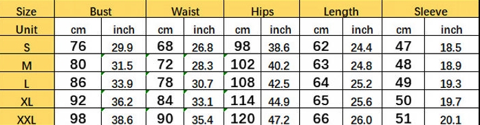 | Size | Bust | Waist | Hips |