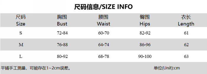 | Size | Bust | Waist | Hips |
