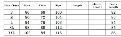 | Size | Bust | Waist | Hips |